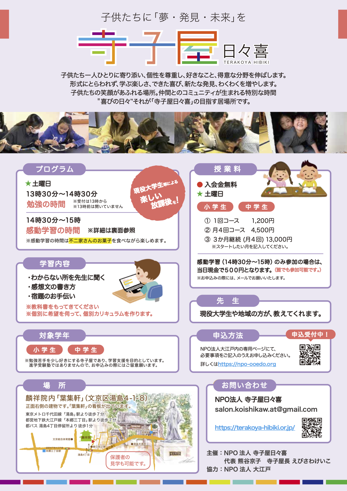 ”喜びの日々”それが「寺子屋 日々喜」の目指す居場所です。