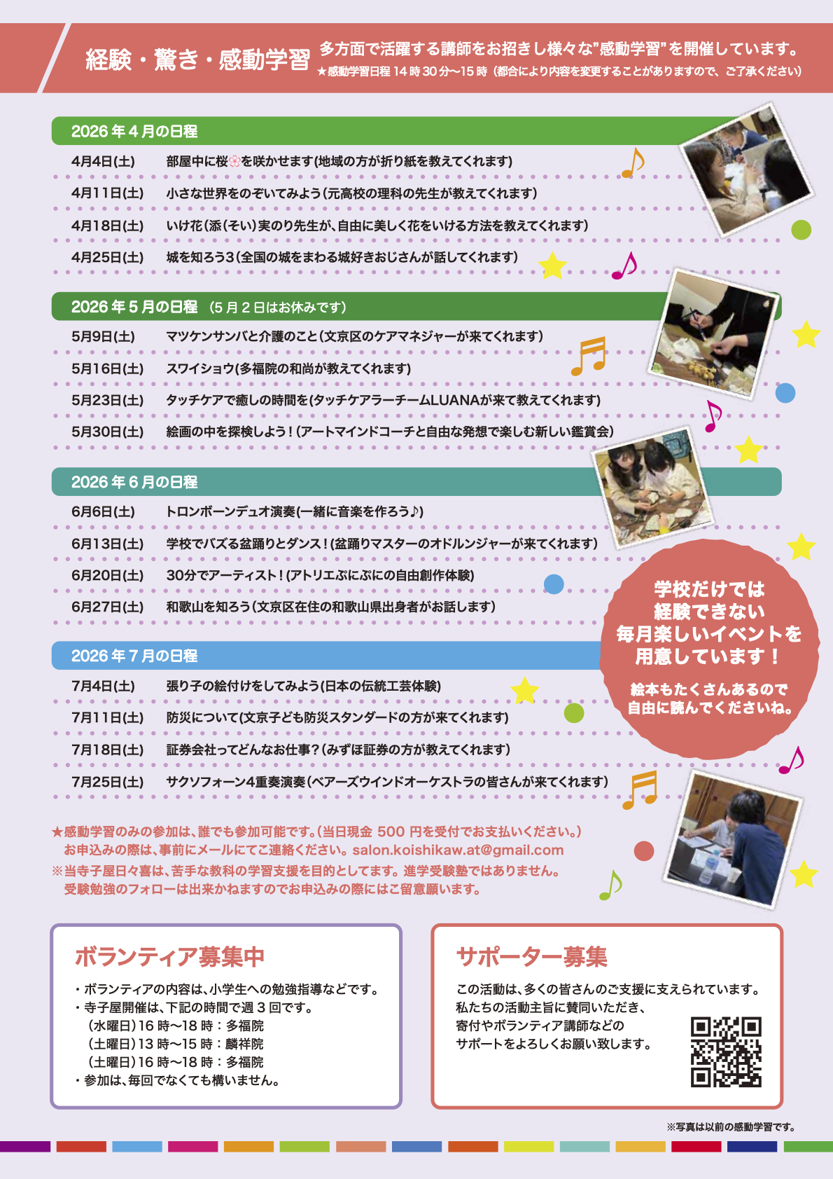 形式にとらわれず、学ぶ楽しさ、できた喜び、新たな発見、わくわくを増やします。